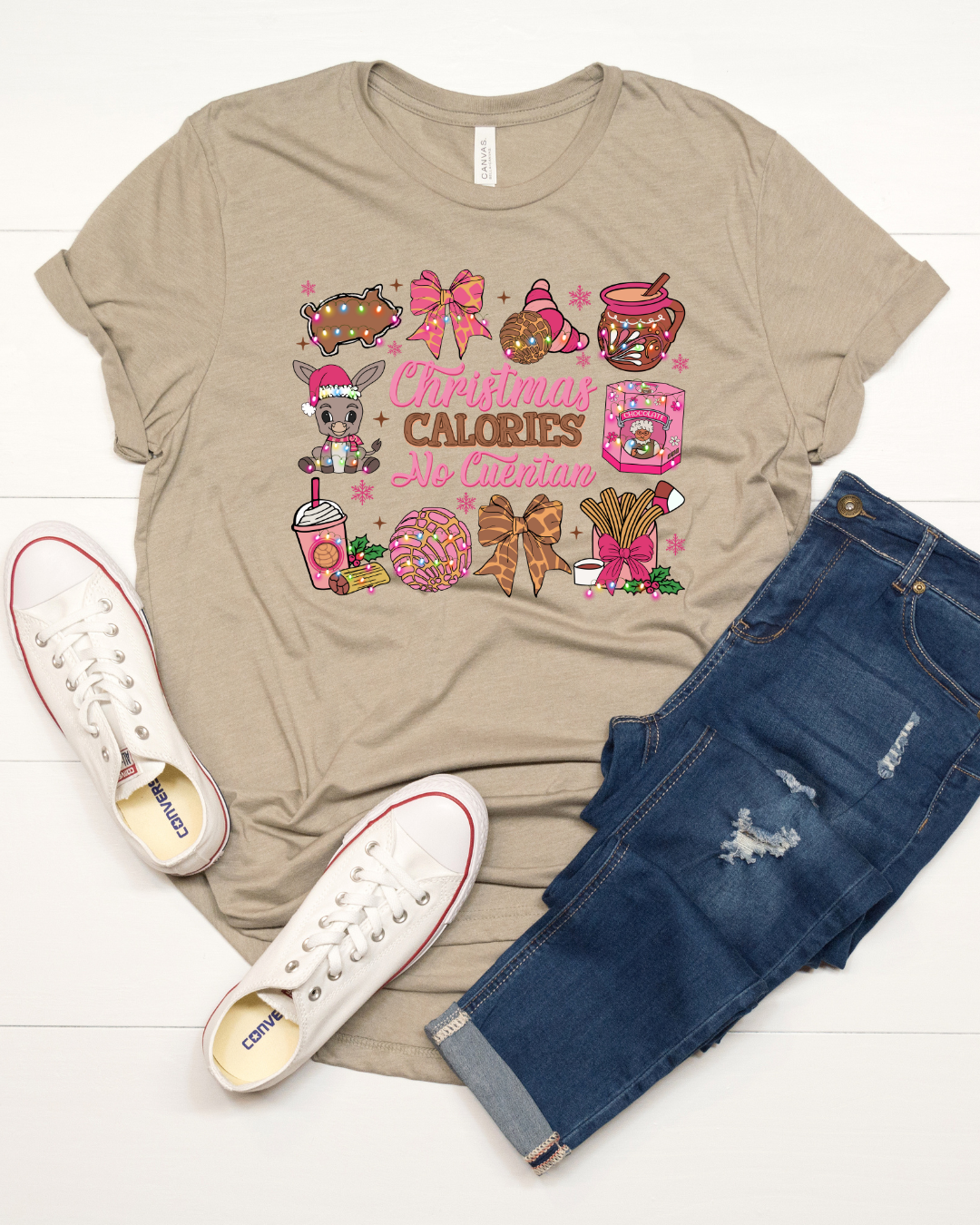 Because during las fiestasβ¦ Christmas calories no cuentan! This festive tee features all your favorite Mexican holiday treats and a playful reminder to enjoy every bite guilt-free. Perfect for posadas, family parties, and every foodie moment in between. ππ¬β¨