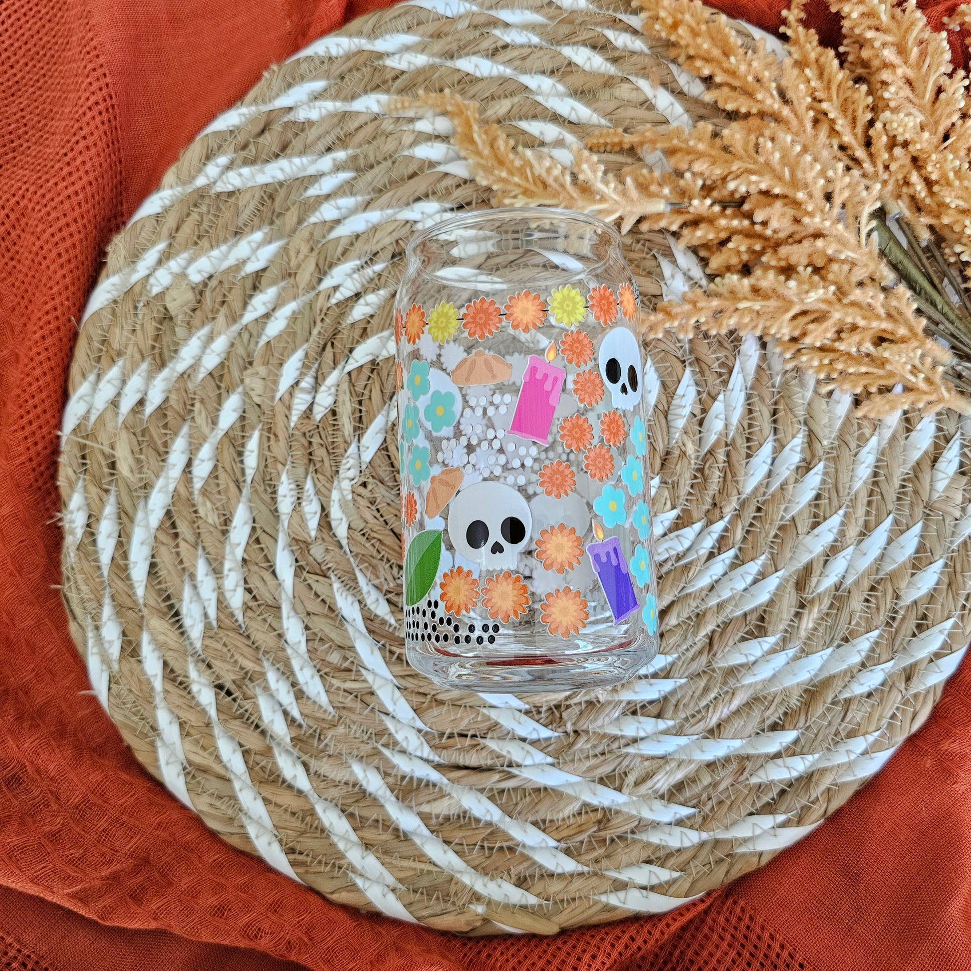 Get in the festive spirit with our Dia de los Muertos cup! This colorful glass cup is perfect for celebrating the Day of the Dead with your favorite drink. Sip in style and honor the tradition of this lively holiday. Cheers to life (and not taking ourselves too seriously)!