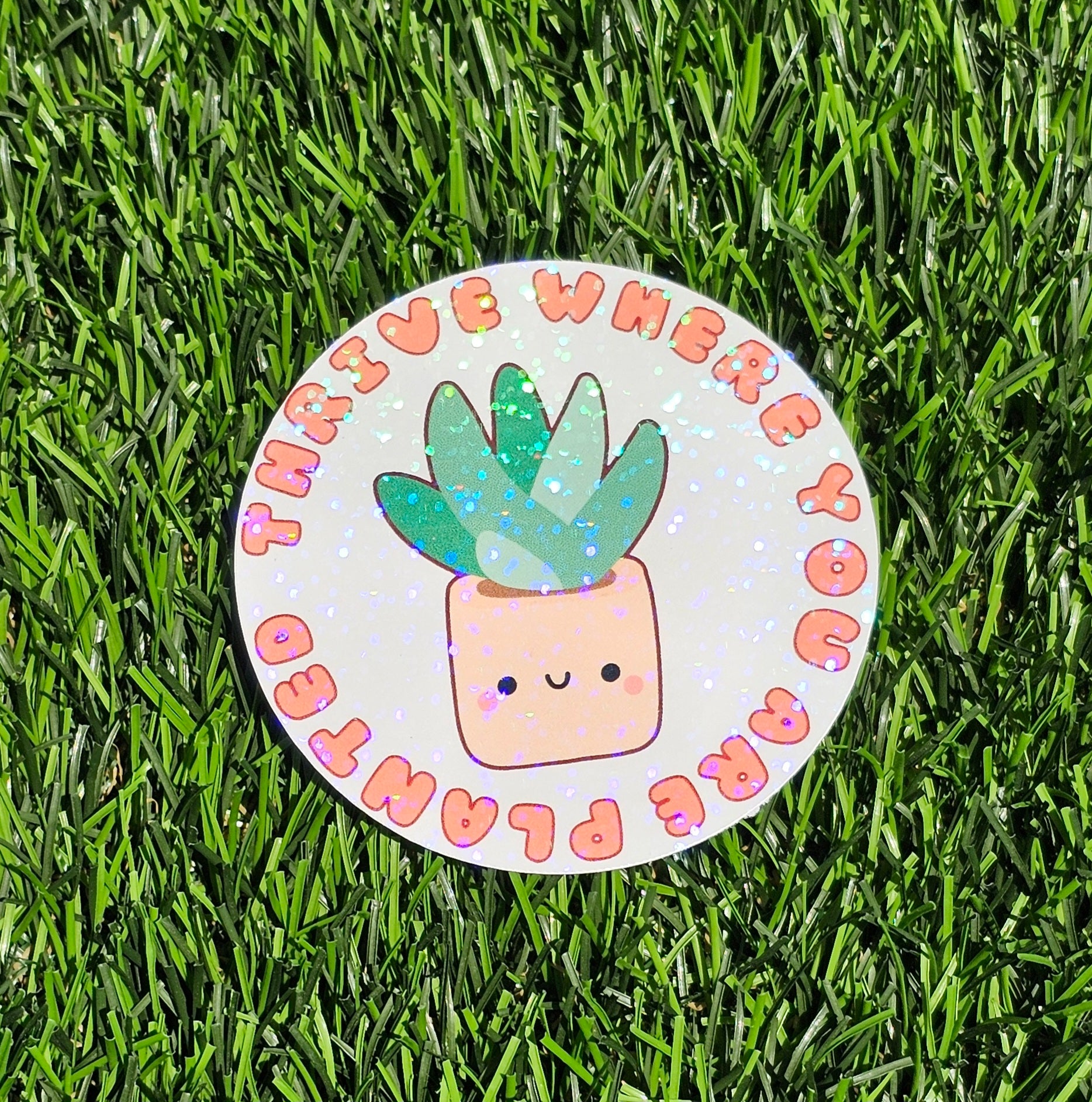 A gentle reminder to bloom right were life has placed you. This waterproof vinyl sticker with a charming plant design is perfect for laptops, water bottles or journals.Β